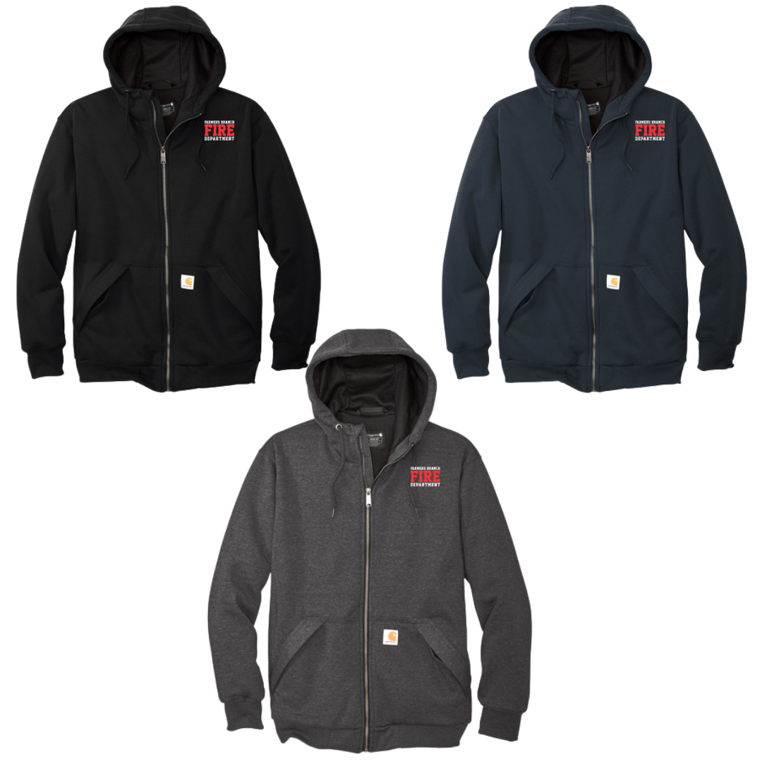 Carhartt Midweight Thermal-Lined Full-Zip Sweatshirt expertly embroidered with the FBFD logo on the left chest.