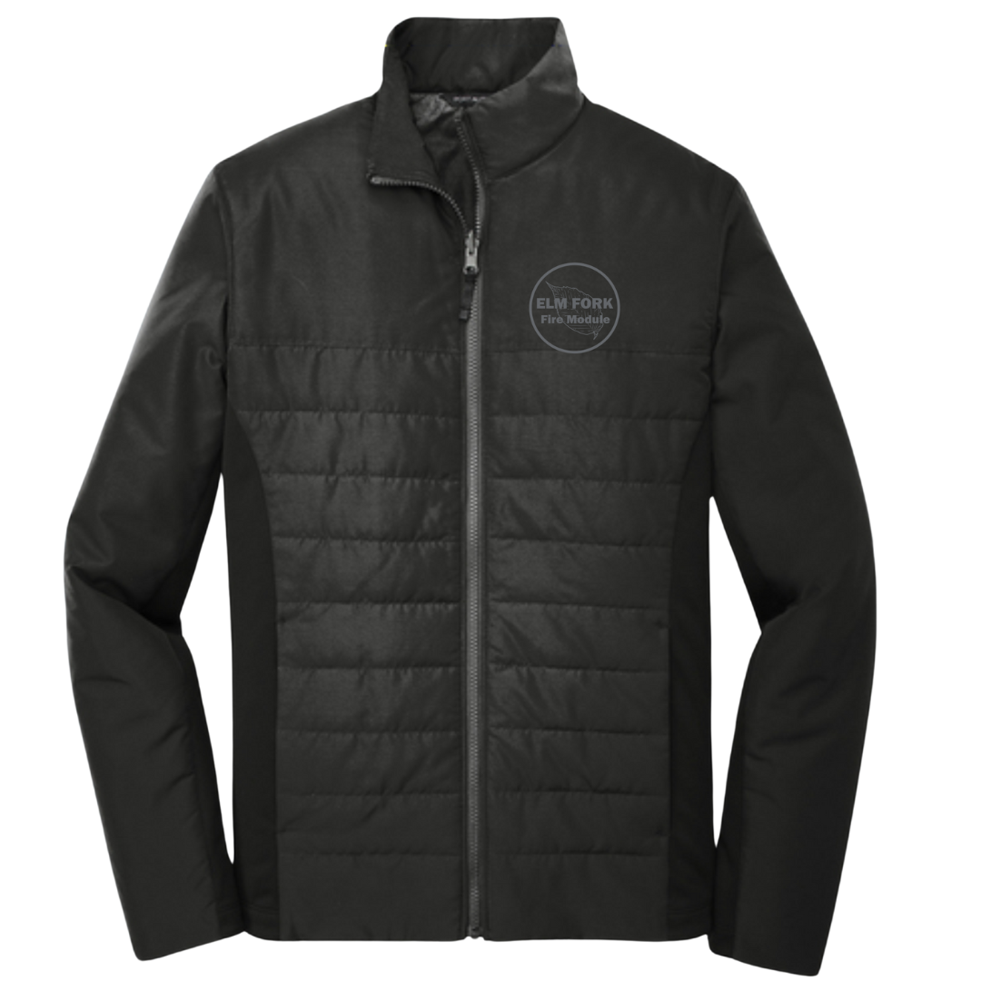 This jacket combines the warmth of low-bulk quilted insulation with flexible soft shell side panels for a trend-right, weather-resistant look.